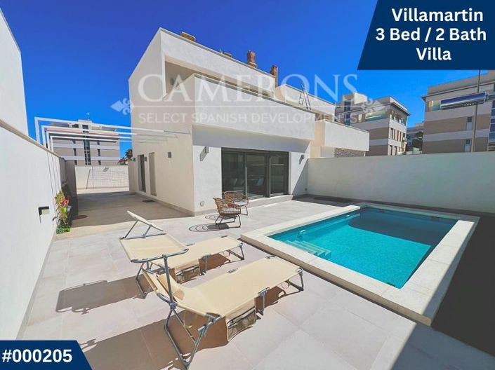 New development of only 10 modern, high quality villas with optional private pools boasting 3 bedrooms and 2/3 bathrooms in private plots of around 120m2 in one of the best areas of Orihuela Costa, walking distance to shops and restaurants, just 5 minutes away from the popular Shopping centre La Zenia Boulevard, and 10 minutes from the white sand beaches of Orihuela Costa. Close to several golf courses and well connected with the AP7 motorway for travel up and down the coast. Murcia’s airport (RMU) is 40 minutes, whilst Alicante airport is just a 50-minute drive away.We have just 10 stunning villas with off street parking on each plot.There is an open plan kitchen and living area with large patio doors leading to your private garden. There are different models, one with 2 en-suites upstairs and another one with 2 bedrooms upstairs sharing the family bathroom; in all them there is one bedroom and a bathroom downstairs. The bathrooms are fully fitted and furnished and include under floor heating and the white goods are also included. The hot and cold air conditioning is pre-installed into each room, we just need to buy the units. There is also a private rooftop solarium to enjoy the sun all year round.We currently have multiple options to choose our own finishes and modify the plans – allowing us to really put our own stamp on these lovely villas!