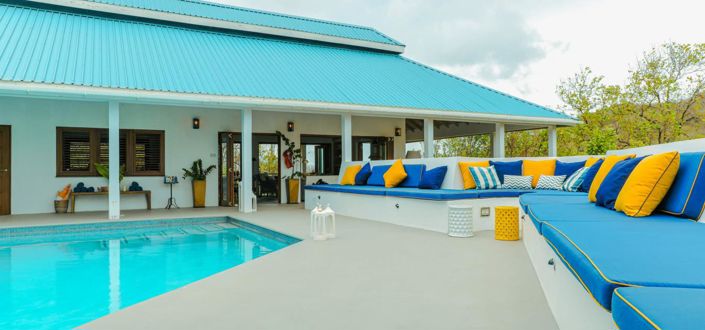 With sweeping sea views of Spring bay as well as the surrounding mountains and valleys of coconut groves. While comfortable and modern, being perched above the tree line, this feels like the ultimate tree house.
