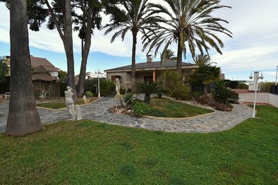 The villa is set on a plot with fully grown trees and a well-maintained garden that can be enjoyed from the three covered terraces this property has. There is also a private garage and a BBQ/summer kitchen on the right side.