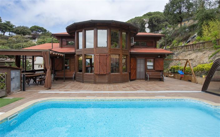 Preciosa Casa ?FINLANDIA NÓRDICA?, toda en madera de la mejor calidad,diseñada y construida por expertos del sector desde hace muchos años, amplia, agradable, 3 plantas, rodeada de árboles. Situada a 5 km del centro de Mataró, en el distrito Urb. Les Sureres,a pocos minutos del hospital de Mataró y de la salida a todas las vías de comunicación. Lugar tranquilo, soleado, elevado en una pendiente, área residencial (villas), a 5 km del mar, a 5 km de la playa, en una calle muy tranquila. Terreno 1?100 m2 (vallada), jardín en diferentes niveles, 150 m2, árboles, piscina descubierta, que puede cubrirse con estructura móvil , convirtiéndose en climatizada (7 x 4 m, 60 ? 180 cm de profundidad). Ducha exterior, terraza, barbacoa, aparcamiento (para 8 coches), garaje individual cubierto para 2 coches .Todo muy cercano, supermercado, centro comercial, restaurantes, parada de autobús 800 m, estación de tren ?Mataró? a 5 km, playa de arena 5 km. Campo de golf 5 km, tenis 300 m, parque infantil 800 m. Atracciones en los alrededores: Mataró Park 1 km, Barcelona 27 km, Circuito Cataluña, Shopping Center ?la Roca? 15 km, Actividad Bosque Vertical, Isla Fantasía 12 km. El acceso a la vivienda es mediante una rampa ,desde la cuál se accede cómodamente en coche. DISTRIBUCIÓN DE LA VIVIENDACasa 7 estancias 357 m2 en 3 plantas. Espacioso, con mobiliario confortable. Salón-comedor con TV satélite (pantalla plana), DVD y aire acondicionado. Salida a la terraza-jardín y a la piscina desde diferentes ubicaciones. Planta 0; 1 dormitorio para 2 camas. 1 dormitorio para 1 cama de matrimonio (200 cm, 190 cm de longitud), baño/bidet/WC y bañera de hidromasaje. Amplia cocina (5 fogones, horno, lavavajillas, microondas, congelador, ) con espacio para mesa de comedor y TV. Ducha/bidet/WC, ducha tipo Hammam, ducha hidromasaje. Calefacción de gas natural , aire acondicionado. En planta inferior : 1 dormitorio para uso sobretodo infantil . WC separado. Planta superior: 1 dormitorio para cama de matrimonio , 2 dormitorios con espacio para 3 camas. Salón. Baño/bidet/WC, bañera de hidromasaje.Jardín 150 m2. Actualmente muebles de terraza, barbacoa, horno leña y varias tumbonas. Vista a las montañas y al paisaje hasta el mar. El alojamiento dispone de espacios para lavadora,secadora y demás electrodomésticos, Internet . Cesped artificial.Si quieres sentirte en los países nórdicos a un paso del mar,ésta es tu casa ideal!!! Mataró, la capital de El Maresme, se sitúa entre el Mediterráneo y la Cordillera Litoral a solo 30 minutos al norte de Barcelona. La población natal del arquitecto modernista Josep Puig i Cadafalch, conserva el encanto de una ciudad mediterránea con esencia de pueblo en su núcleo antiguo, su Rambla y su riera. Cuenta con una Ruta modernista con obras de Gaudí y Puig i Cadafalch.Una amplia agenda cultural con conciertos, obras de teatro y exposiciones y la dársena deportiva del puerto le dan gran dinamismo y movimiento social. La zona de comercios, áreas de recreo y excelentes restaurantes se suman a la vida de Mataró. Importante subrayar la pujante actividad industrial de sus alrededores, colegios, hospitales, museos, campos de golf .El municipio, que vive de cara al mar, cuenta con numerosas playas de arena dorada como El Varador, el Callao y la de Sant Simó y del Búnquer donde disfrutar de idílicos atardeceres. También cuenta con con una antigua villa romana y una capilla exponente del barroco catalán.Considere Mataró para encontrar su casa ideal si busca la combinación perfecta de playa y montaña, con la tranquilidad que se respira frente al mar y en una ciudad dinámica, bien comunicada y muy cerca de Barcelona. Un lugar donde disfrutar de fabulosos rincones, y encontrar su piso.Beautiful House \"NORDIC FINLAND\", all in wood of the best quality, designed and built by experts in the sector for many years, spacious, pleasant, 3 floors, surrounded by trees. Located 5 km from the center of Mataró, in the Urb. Les Sureres district, a few minutes from the Mataró hospital and the exit to all communication routes. In a quiet, sunny, elevated position on a slope, residential area (villas), 5 km from the sea, 5 km from the beach, on a very quiet street. Plot 1,100 m2 (fenced), garden on different levels, 150 m2, trees, outdoor pool, which can be covered with a mobile structure, becoming heated (7 x 4 m, 60 ? 180 cm deep). Outdoor shower, terrace, barbecue, parking (for 8 cars), individual covered garage for 2 cars. Everything very close, supermarket, shopping center, restaurants, bus stop 800 m away, \"Mataró\" train station 5 km away, sand 5 km. Golf course 5 km, tennis 300 m, children s playground 800 m. Nearby attractions: Mataró Park 1 km, Barcelona 27 km, Catalunya Circuit, ?la Roca? Shopping Center 15 km, Vertical Forest Activity, Fantasy Island 12 km. Access to the house is through a ramp, from which it is easily accessed by car.HOUSING DISTRIBUTION 7Room house 357 m2 on 3 floors. Spacious, comfortable furniture. Living room with satellite TV (flat screen), DVD and air conditioning. Exit to the terrace-garden and the pool from different locations. Plant 0; 1 bedroom for 2 beds. 1 bedroom for 1 double bed (200 cm, length 190 cm), bath/bidet/WC and jacuzzi. Large kitchen (5 hotplates, oven, dishwasher, microwave, freezer, ) with space for a dining table and TV. Shower/bidet/WC, Hammam shower, hydromassage shower. Natural gas heating, air conditioning. On the lower floor: 1 bedroom for children s use above all. separate toilet. Upper floor: 1 bedroom with a double bed, 2 bedrooms with space for 3 beds. Lounge. Bath/bidet/WC, whirlpool. Garden 150 m2. Currently terrace furniture, barbecue, wood oven and several sun loungers. View of the mountains and the landscape to the sea. The accommodation has spaces for washing machine, dryer and other appliances, Internet. Artificial grass. If you want to feel in the Nordic countries one step away from the sea, 
