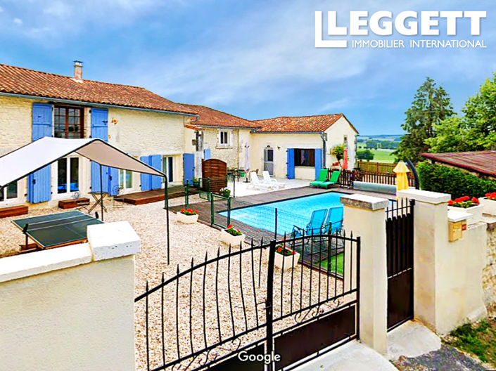 in a small peaceful hamlet in an elevated position giving it absolutely spectacular views across the rolling countryside. There is a front courtyard with the 8 x 4 swimming pool, and to the back of the property is the large garden and two terraced areas, the garage and space to park several cars.