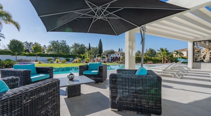 The villa features fantastic spacious terraces, both on the ground level and first floor. The swimming pool area offers a play area for the little ones, outdoor kitchen with barbecue and outdoor dining area highlighted by a decorative wall feature.