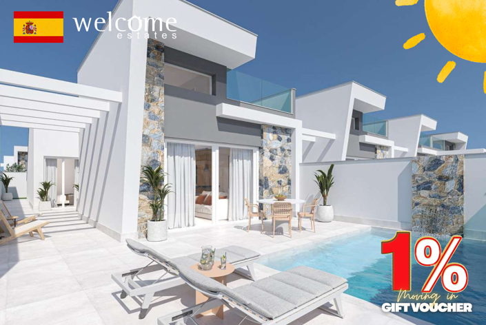 THIS PROPERTY INCLUDES A 1% WELCOME ESTATES GIFT! Which can be redeemed for white goods, furniture lighting and much more. Modern New Construction Villas in Los Alcázares
