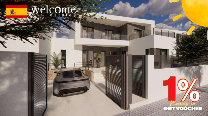 THIS PROPERTY INCLUDES A 1% WELCOME ESTATES GIFT! Which can be redeemed for white goods, furniture lighting and much more. New Build Quads and Townhouses in DoloresThis modern residential development in Dolores features newly built quads and townhouses. Designed with contemporary style and comfort in mind, each home is spread over two floors, offering three bedrooms and three bathrooms. The open-plan kitchen seamlessly connects with the living room, which leads directly to a private terrace and garden. Every home also comes with its own private pool and parking space.High-Quality Finishes and Modern AmenitiesThese homes are constructed using high-quality materials and finishes. Exterior carpentry is made of aluminum with thermal break, and the bathrooms feature glass shower enclosures. LED lighting is installed throughout the property, ensuring energy efficiency and a modern ambiance. These features combine to create a comfortable, stylish living environment for you and your family.Prime Location Near Daily ServicesLocated on the outskirts of the charming town of Dolores, these homes are just a short walk from essential day-to-day services, including shops, restaurants, and local amenities. Dolores is part of the Vega Baja del Segura region, in the southern part of Alicante province, known for its agricultural landscapes and relaxed pace of life.Close to Key Points of InterestLa Marina Beach: 10 kmGuardamar Beach: 10 kmAlicante Airport: 30 kmMurcia-Corvera Airport: 60 kmGolf Courses: 15 kmShopping Centers: 12 kmPerfect for Enjoying the Costa Blanca LifestyleWith the Mediterranean climate, beautiful beaches just a quick trip in the car, and several golf courses nearby, this development offers the ideal balance of relaxation and leisure. Whether you're looking for a holiday home or a permanent residence, these new build homes in Dolores provide modern living in a serene, well-connected location.