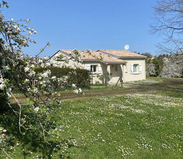 A modern house with an open-plan kitchen and living area, 3 bedrooms and a bathroom. A sunny terrace with private swimming pool.