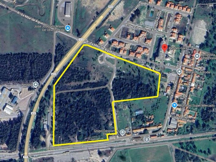 Rustic land with 108,508 m2, located to the south of Pegões-Gare between this nucleus and the railway, facing the West with the EN 10 and to the South with the South railway line and an unpaved street that connects to Largo José Ribeiro Santana, to the North by a green area and Rua da Mãe de Água that gives access to the Pegões-Gare agglomeration and the EN10 and to the East with a rustic building, school equipment and part of Av. April 25.