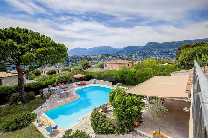 Vence South in the residential area of Malbosquet with an exceptional location, Superb Villa of 160m2 + 10m2 laundry room, facing South / West and its splendid swimming pool on a plot of approximately 1700m2, in a dominant position, 360 o view of the hills of Vence, the sea, St Paul de Vence, absolute calm, around ten parking spaces including 3 under shelters. Allow 20 minutes for Nice Côte d'Azur airport, 5 minutes from Vence and 15 minutes from the beaches. On the ground floor you will find: entrance hall with storage, 1 living room with fireplace/dining room, 1 fitted and equipped kitchen, 2 bedrooms, 1 shower room, 1 separate toilet, all opening onto the South/West facing terrace with incredible sunsets, Upstairs, 2 bedrooms (a master bedroom facing South/West/East, with dressing room, 1 shower room with toilet And 1 bedroom, 1 office, 1 toilet with water point facing South/West) This architect-designed villa was completely renovated in 2021 and its swimming pool in 2024, This exceptional property also includes a laundry room, a cellar, a 20m2 shed and a pétanque court. The villa has fiber optics, is fully air-conditioned, has mains drainage, is compliant, has automatic watering, is garden lighting, is electric gates, and is fully fenced. Only one visit will make you want to buy it!