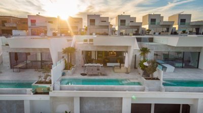 Design villa with a total area of 236 square meters overlooking Guardamar and the sea. Fully furnished and all inclusive to enter to live now. It has 4 rooms with private bathroom and terraces overlooking the Sierra del Recorral. From the infinity pool you can enjoy the beautiful views and natural surroundings of Rojales. The natural light on the ground floor thanks to the English patio, ensures that you can also maximize the use of this space for additional bedrooms, storage spaces or for the leisure area you have always dreamed of having. Its sustainable design, its high quality finishes and its unique location make the Residencial Oceanic one of the best developments offered by the Costa Blanca.