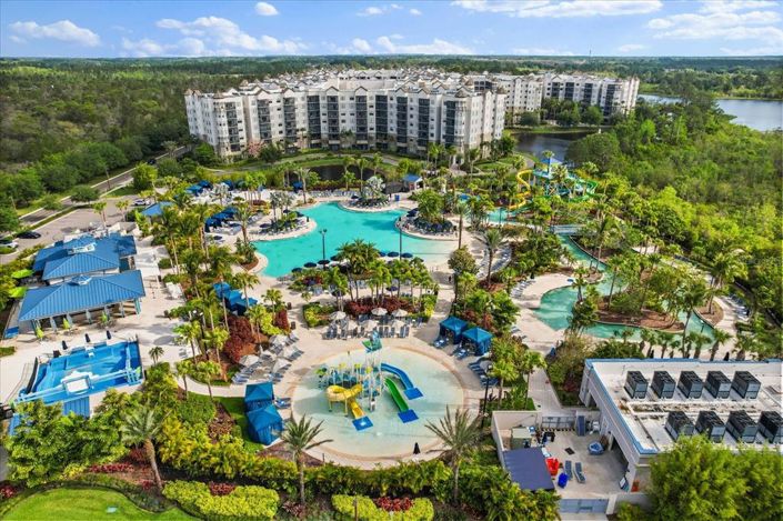 Enjoy the ultimate resort lifestyle with incredible on-site amenities: a full water park with dual water slides, a FlowRider® double surf simulator, lazy river, splash zones, multiple pools, private cabanas, restaurants, spa, fitness centers, arcade game room, mini golf, walking trails, and more. The resort also features a convenient alfresco market and offers complimentary shuttle service to Disney for your added ease.