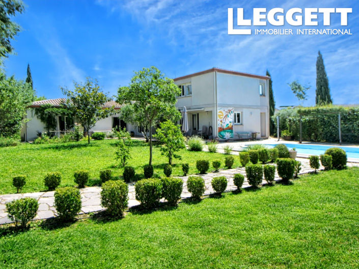 Tucked discreetly in the very heart of a vibrant village, just a couple of minutes from the A750 motorway, this rare property offers a completely unexpected haven of peace and greenery. Set within a beautifully landscaped, walled, and gated garden of more than 3000m², this gracious 2007 architect-designed home is a truly rare find – combining the serenity of a countryside retreat with the convenience of a central village location, easily commutable to Montpellier.