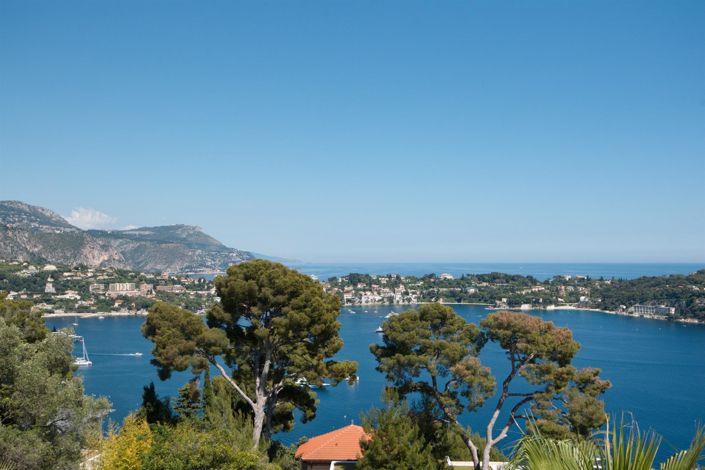 Nice Mont Boron, just a stone's throw from the forest park and 5 minutes from Villefranche-sur-Mer, discover this sumptuous contemporary-style architect-designed villa. Located in a quiet residential area, it boasts breathtaking views over the bay and Cap Ferrat. Designed using exceptional materials such as Carrara marble, Lualdi doors, Poliform wardrobes and a Siematic/Gaggenau kitchen, this property extends over two levels and offers top-of-the-range features. The bright double living room offers magnificent sea views. The separate kitchen also includes a dining room. The master suite has two dressing rooms and a bathroom. All three bedrooms have direct access to large terraces. A wellness area consists of a spa, hammam, sauna and shower. A laundry room and wine cellar complete this level. Outside, a landscaped Mediterranean garden surrounds the villa and features a 15 x 5 meters heated swimming pool with a chlorine-free filtration system. A garage with direct access to the house completes the property. There is also an independent guest house with private access to the pool and parking area, comprising a kitchen/living room, bedroom, built-in wardrobe and bathroom. The villa is equipped with the latest technology in home automation and video surveillance, offering comfort and security on a daily basis. The grounds extend to 1607sqm. An exceptional location facing the Mediterranean.