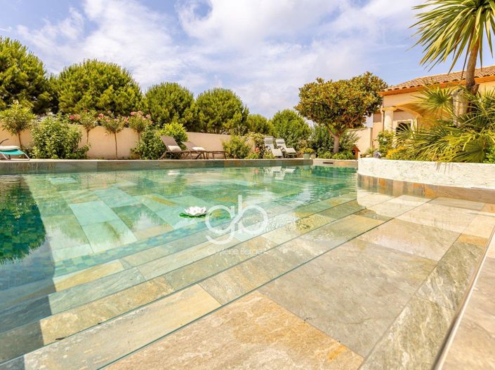 Rare - Single-Story? 4 Bedrooms (5 Bedrooms Possible) - Pool - Jacuzzi - Master Suite - Independent Studio - Open View - Elevation Possible - Quiet Environment - Prm Standards Rare for sale, located in a quiet and sought-after residential setting, just 10 minutes by bike from the beaches of Palavas-les-Flots, 15 minutes on foot from the town center and the tramway, and 10 minutes on foot from a college, this exceptional property offers 237 m2 of living space on one level, meeting Pmr standards, on a landscaped plot of 900 m2, not overlooked, with an unobstructed view of nature. Upon entering, a hall opens onto a living room of approximately 58 m2 with a magnificent 47 m2 veranda, bathed in light, and offering an unobstructed view of the terrace, the Bali stone swimming pool area and jacuzzi. The house has four bedrooms, including: - A 25 m2 master suite with shower room, toilet and dressing room, - A 17 m2 outbuilding with dedicated entrance, shower room and toilet, ideal for guests or a teenager, A laundry room, bathroom, toilet, a separate dressing room, and plenty of storage space optimize the space. A separate office or workshop can be converted into a veranda. All bedrooms are oriented around the exceptional exterior the garden is planted with Mediterranean species and fruit trees, a true haven of peace. It houses a swimming pool, a 5-seater jacuzzi, a garden shed, several relaxation areas, as well as a borehole allowing economical watering. Among the services: aluminum joinery, ducted air conditioning, centralized roller shutters, large tiled floors, charging socket for electric vehicles. Finally, a building extension permit has been granted, allowing for an extension of up to 115 m2 on the upper floor, thus offering rare development potential for the area. It is also possible, depending on needs, to have a 5th bedroom or to convert a garage. This property combines space, comfort, privacy and immediate proximity to amenities and the coastline. Dpe: B, Ges: A Property tax: 3583? Price including tax and fees payable by the seller including tax Discover all the unique features of this splendid property for sale by making an appointment 7 days a week from 8:00 a.m. To 10:00 p.m. With your agent Guylène Bergé: Mr. Loiseau Yann at O Rsac (Ei). Mr. Bonnet Olivier at O Rsac (Ei). Or with your Guylene Bergé agency to organize a visit at from Monday to Friday from 9:00 a.m. To 7:00 p.m.