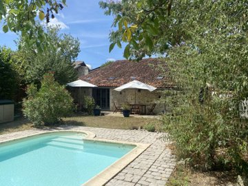 Set in its own private space and with gardens to front and rear. The pool is 8x4m with electric cover is in the front garden. To the rear are gardens with a well and the barn for storage and, with permissions, for renovation.