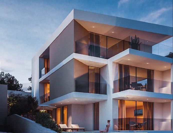 A modern designer villa in the heart of Rogoznica, just 100 meters from the turquoise sea and the beach. This luxurious property is surrounded by a variety of cafés, restaurants, and shops, blending comfort with a touch of opulence. One of Croatia's premier marinas, Marina Frapa, is only a 15-minute stroll along the scenic promenade.This impressive villa spans 551 m² across three floors and consists of three separate apartments.In the basement, there is a spacious garage that accommodates five vehicles, along with additional storage spaces for optimal organization.The ground floor is a stunning mix of elegance and practicality, featuring a garden, terrace, and swimming pool. Inside, there are two generously sized bedrooms, a modern kitchen, a dining area, and a living room, creating the ideal environment for relaxation and entertainment.1st Floor: Two bedrooms, two bathrooms, a guest toilet, a walk-in wardrobe, two terraces, and an open-plan kitchen, dining, and living area.2nd Floor: A two-story penthouse with three bedrooms, a dressing room, two bathrooms, two terraces, a gallery, a library, and a spacious kitchen with a dining and living area.Facing south, the villa offers a breathtaking panoramic view of the entire bay, adding an exclusive and tranquil atmosphere. Built to the highest standards, the property is offered as a turnkey solution, with completion expected by the end of 2024.Each apartment can also be purchased s