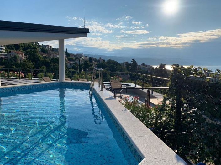 We offer a fantastic villa in the center of Opatija. The villa with a net area of 641 m2 consists of four floors. On the ground floor there is a garage with eight parking spaces, storage and engine room. The villa consists of a high ground floor, 1st floor and 2nd floor. On each floor there are two apartments. Larger apartments consist of a living room with kitchen, two bedrooms and two bathrooms. The smaller apartments consist of a living room with a kitchen, a bedroom and a bathroom. The apartments are modern and refined. At the top of the villa there is a flat roof with a swimming pool and a terrace with panoramic views. Allow this unique property, top quality and modern design, imbued with a Mediterranean atmosphere, to delight you.Opatija, a beautiful coastal town located on the Adriatic Sea is a famous tourist destination for tourists all around the world. The town is surrounded by beautiful nature situated at the foot of Mount Ucka. Properties in Opatija offer an invaluable seaview of surrounding islands of Krk and Cres. Opatija is surrounded by charming small towns with old houses located in narrow streets rich in history. The streets of the city of Opatija are properties that stand out with their specific architecture and villas dating from the Habsburg period. A large selection of beaches, crystal clear sea and a variety of tourist services are key factors that make Opatija a perfect tourist destination recognized by neighboring countries as an excellent investment choice. Ref: RE-U-14331Overall additional expenses borne by the Buyer of real estate in Croatia are around 7% of property cost in total, which includes: property transfer tax (3% of property value), agency/brokerage commission (3%+VAT on commission), advocate fee (cca 1%), notary fee, court registration fee and official certified translation expenses. Agency/brokerage agreement is signed prior to visiting properties.Property advantages: Garage, Swimming pool, Storage, Modern