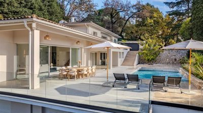 Situated in the heart of a sought-after area of Mougins, close to the shops and in a quiet location, this elegant 300 m² villa, completely renovated in 2024, is set in grounds of approx. 2,000 m² with swimming pool.