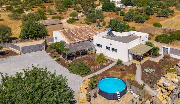 The cosy living room opens to a sun-drenched terrace with multiple seating and lounge areas around the house. Enjoy an above-ground pool and natural garden, surrounded by rolling countryside views. The secluded, but not isolated location guarantees peace, privacy, and a true Algarve lifestyle.