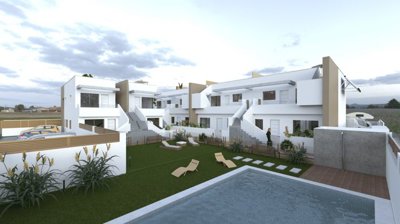 New development of bungalows situated in a privileged location in the centre of Pilar de la Horadada, an area that offers a wide range of services, including supermarkets and proximity to beautiful beaches, making it an ideal choice for both everyday life and summer getaways. This residential complex is made up of 12 modern bungalows, with 1, 2 and 3 bedroom options, adapting to different needs, and providing a perfect balance between comfort, style and affordability.