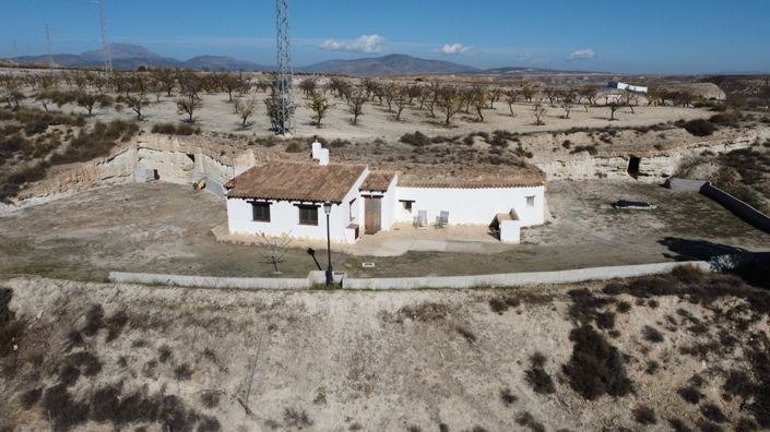 A charming detached 3 bed, 2 bath SW facing cave house with a second storage cave at the side, with approximately 800sqm (8600 sqft) of garden area to the front and side of the home. Situated in the quiet hamlet of La Alqueria, Granada and has stunning views of the countryside towards the mountains and is just a 5 minute drive to the nearest village of Galera and 10 minutes to the larger town of Huescar which has all amenities. Mains electric and water connected. Sold partially furnished. ---------------------------------------- Full Video Tour Available -------------------------------- This cave house offers a unique blend of traditional charm and modern comfort. It features an open-plan living room with an American-style kitchen, 2 bathrooms, 3 bedrooms, a small independent cave to the side currently used as a workshop, which could be made into another bedroom and a separate cave perfect for storage or to reform.