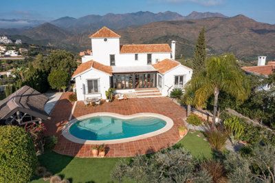 Located in La Mairena, near Elviria, the villa is set on top of the slope ridge offering unparalleled 360º views of the sea, surrounding mountains, and the picturesque Valley of La Mairena, stretching down to La Cala Golf Resort. The property offers complete privacy, breathtaking views, and an awe-inspiring pool area, making it the perfect retreat.