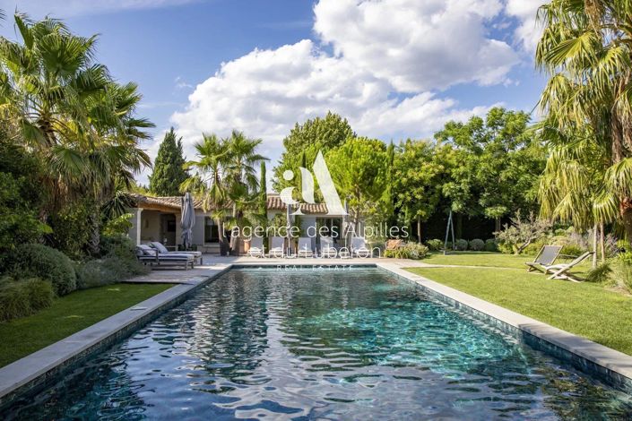 This architect’s house of about 400 m2 easy to live is located in a closed landscaped garden, sheltered from all nuisances walking distance from the village center of its shops and fine restaurants. Nice reception rooms on the ground floor including a large living room, a winter dining room, a kitchen with pantry, cold room and lingerie, 2 en-suite bedrooms including a vast master and a double garage. The 1st floor has 2 beautiful bedrooms with their own bathrooms and Wc. The garden of about 2500 m2 is a surprising oasis organized in shaded terraces, summer dining room, swimming pool 14X6, pool house, bar and summer kitchen, 2 bedrooms sharing 1 bathroom and Wc in annex, sports relaxation area/ massages. Its vast capacity is ideal to live all year round and receive relatives &friends comfortably with elegance and generosity or also for a family home in a second residence during regenerating breaks, peaceful and close to the sweet nature of Provence.