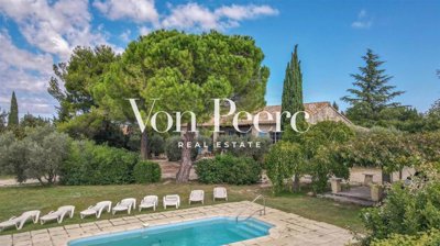 Located on the small roads lined with olive trees in Fontvieille, 5 minutes from the village and 10 minutes from the cultural center of Arles. This charming stone house in Fontvieille, with an approximate area of 170 m2, enjoys a very pretty garden of more than 2500 m2. It consists of an entrance directly opening onto the living room with a stone fireplace. There are 3 bedrooms on the ground floor and one bedroom upstairs. An independent kitchen and dining room complete these spaces. There is also a swimming pool and a pool house. The house benefits mainly from a ground footprint of 40%, allowing the possibility of expansion and outbuildings.