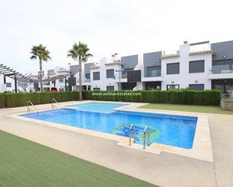 Bright and modern south-facing top-floor bungalow located in the popular Residencial Lamar Resort, a secure and well-maintained gated community in Pilar de la Horadada.