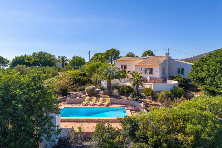 Steps lead down from the main house to a sparkling chlorine swimming pool, surrounded by paved terracing and a covered BBQ area perfect for entertaining friends and family.