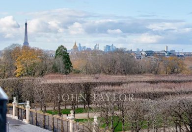Overlooking the Luxembourg Gardens, located on the 4th floor with elevator in an elegant, concierge-staffed Art Deco building, we present a refined 175.63 sqm apartment with 3.3m high ceilings, in need of renovation, and offering unobstructed views of the gardens and surrounding landmarks: Saint-Sulpice, Les Invalides, the Eiffel Tower, and Sacré-Cœur.