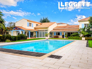 This impressive 8-bedroom estate offers generous living space, complete privacy, and beautifully enclosed gardens just minutes from Jonzac. The home features large reception rooms, bright family areas, and spacious bedrooms that comfortably accommodate family and guests.