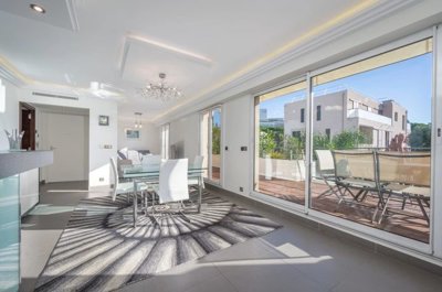This bright, walk-through apartment boasts top-of-the-range materials and fittings, plenty of storage space and a large dressing room. It is sold fully furnished, with exceptional features including a fully-equipped kitchen with black granite worktop.