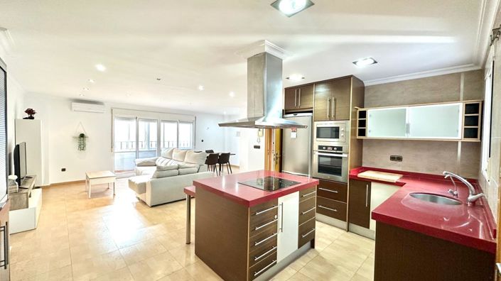 This spectacular flat, located on Calle Calera just 900 metres from the beach, offers a unique opportunity to purchase a spacious, completely renovated property designed in a modern and functional style. The property has 151 square metres of floor space, an exceptional size that allows you to enjoy spacious rooms and a layout that is perfectly designed to ensure comfort and quality of life. Upon entering the property, we are greeted by a spacious and bright open-plan living-dining room, integrated with an elegant American-style kitchen with a central island, which becomes the true heart of the home. This layout creates a modern and welcoming atmosphere, ideal for both everyday living and social gatherings. The kitchen is fully equipped with high-quality appliances and also has a utility room, providing extra space for laundry, storage or domestic support. The property has three bedrooms, all of which are spacious, bright and carefully designed to ensure comfort and privacy. The master bedroom is particularly noteworthy, as it has an en-suite bathroom and dressing room, offering a high-end residential experience. This bathroom has also been designed to serve the other two bedrooms, if desired, providing a practical solution for family or guest use. Complementing the layout, the property also has an additional toilet, adding comfort and functionality to the whole. The entire flat has been recently refurbished, incorporating modern finishes, quality materials and a contemporary aesthetic that allows you to enjoy a brand new home, ready to move into without the need for additional refurbishment. Overall, this flat on Calle Calera, a short distance from the sea, stands out for its large surface area, its open and elegant design, the quality of its refurbishment and the excellent layout of its spaces, making it an ideal option both as a high-end primary residence and as an investment with great potential in a well-established and highly sought-after location.