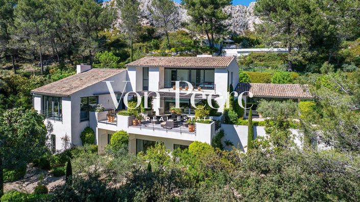 Contemporary house of approximately 400 m² set on a magnificent plot of more than 1 hectare at the foot of a limestone cliff, located in a quiet and residential area of the commune of Les Baux de Provence.