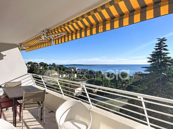In a prestigious residence with park and swimming pool, come and discover this sublime 3-room apartment on a high floor. It features an entrance hall, a spacious living room with dining area, and a fully fitted and equipped kitchen. Sliding doors provide additional sleeping space. The terrace offers panoramic sea views of the Lérins Islands. The sleeping area comprises two independent bedrooms, each with a private shower. Sold with a garage.