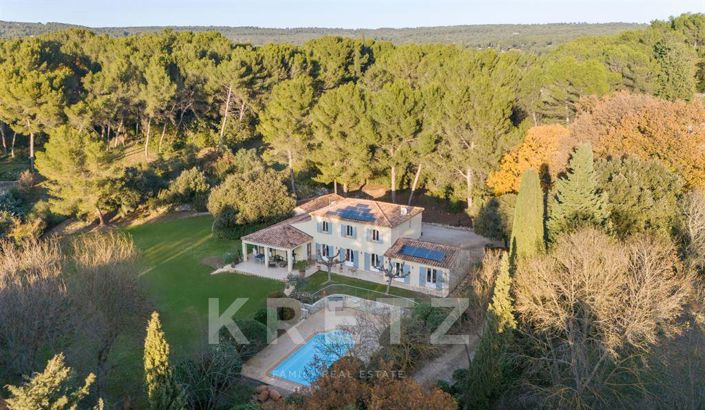 Located in the sought-after town of Ventabren, 15 minutes from Aix-en-Provence, this bastide-type property of approximately 289 m² is located in the heart of a green and residential environment, on a wooded plot of approximately 4,100 m².