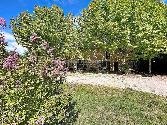 A farmhouse with Provençal charm with its terrace under the plane trees.
