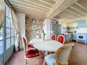 In the heart of this magnificent hilltop villa in the Pays de Fayence, enjoy the charm of the old and all the modern comforts. This magnificent corner village house was built at the beginning of the twentieth century and renovated in 2008 by its current owners and their architect. Walls, floors, roof, façade, plumbing, electricity... Everything is recent. It offers a living area of 120 m² in total, spread over three levels, with four main rooms and three bedrooms, one of which is a master suite on the top level.
