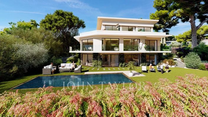 It features a sea-view living/dining room, independent kitchen, 6 bedrooms with bathrooms, gym, large garage and swimming pool.