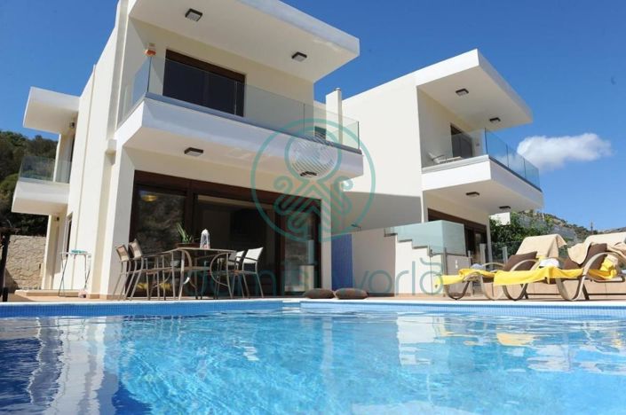 Each villa offers 4 bedrooms in total, 3 bathrooms, 1 wc, a spacious living room and an open-plan kitchen with full equipment, a dining room and a swimming pool.