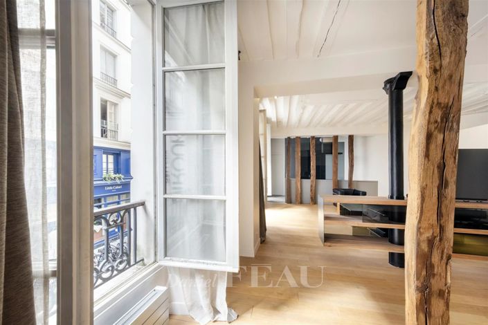 This tastefully revamped 57 sqm dual-aspect apartment is on the 1st floor of a fine mid 17th century building which was built for François le Tellier, a renowned minister during the reign of Louis Xiv.