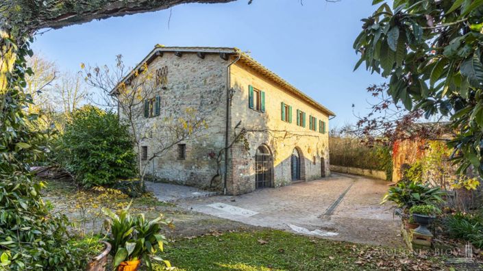For horse lovers, a two-story country house on a farm with riding stables, available for sale exclusively in Siena. This is a timeless Tuscan old mill dating back to the 1800s, offered in an exceptional location close to Siena. Positioned a mere 5 kilometers from the city gates of Siena, this refined 19th-century former mill occupies a strategic vantage point within a traditional Tuscan farm, offering immediate access to professional riding stables. The two-story house extends to approximately 337 square metres and is surrounded by 0.38 hectares of fenced land with an automatic gate, creating a private and secure setting. Interiors are warm and atmospheric, defined by terracotta floors throughout, featuring striking vaulted ceilings, exposed wooden beams and brick arches. The ground floor opens into a generous living space with fireplace and kitchen, designed for convivial living, while the upper floor offers a relaxed layout with a sitting room and fireplace, a kitchen with dining area, a study, two bedrooms and two bathrooms. The house is presented in good condition and is partly furnished, allowing for immediate enjoyment while leaving scope for personal refinement. Two annexes, a barn and a smaller outbuilding, complement the main residence and offer further potential, whether for storage, studio space or future enhancement. Set amid classic Tuscan scenery and riding stables, the property enjoys a rare balance of rural tranquillity and accessibility. PROPERTY Ref: SIE3437Location: Monteriggioni, Province: Siena, Region: TuscanyType: 337 sq m/3627 sq ft two-story classic country house with 2 annexes and garden, within a traditional Tuscan farmAnnexes: a 55 sq m/592 sq ft barn and a 18 sq m/193 sq ft annexYear of construction: 1800 Year of restoration: 1995Conditions: goodLand/Garden: 0,38 hectares/0.94 acres fenced land with automatic gateLayout: Ground Floor: large open-plan living area featuring striking vaulted ceilings, brick arches, fireplace and a kitchen, 1 courtesy bathroomFirst Floor: sitting room with fireplace, kitchen with dining area, high ceilings with wooden beams, study, 2 bedrooms and 2 bathroomsDistance from services: 5 kmDistance from main airports: Florence 70 kmUtilities: Fixed telephone network: available; Internet: available; Heating: LPG; Water: mains city supply; Electricity: availablePartly furnishedTerracotta flooring throughoutThe property is owned by a private individual. The location, for privacy, is approximate. Please note all measurements cited are approximateEnergy Efficiency Rating: GApolloni & Blom RE conducts technical due diligence with the owner's technician to have a full report on each property's urban and cadastral state of the art. The due diligence may be requested by clients showing a strong interest in the property