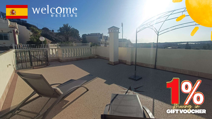 Walking back towards the kitchen there is a door that provides access out to a small terrace where you have a spiral staircase that takes you up to a large solarium, with views over the countryside down towards the coast. This bungalow has been fitted out to a good standard and is less than a 5-minute drive to all the local amenities, such as restaurants, shops and bars and is available for 142,500 euros. This bungalow offers you the future owner a beautiful property in a convenient location, at a great price and one that you can make your new home in the sun, so contact us now to arrange a viewing – Thank you for looking!