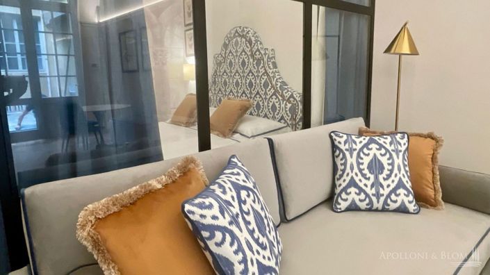 Exquisite Oltrarno residence with vaulted ceilings, marble finishes and bespoke interiors, moments from the historic Boboli Gardens. Nestled within the timeless allure of the Oltrarno district, just a short stroll from the Boboli Gardens and the La Specola Museum, this property of approximately 540 square feet represents a jewel of rare beauty set within a prestigious 15th-century palace. This ground-floor residence, accessed via a discreet and private communal courtyard, has undergone a meticulous restoration that masterfully blends Renaissance heritage with contemporary opulence. The primary salon unfolds as a dramatic, light-filled volume where soaring cross-vaulted ceilings are accentuated by recessed LED lighting. Within this space, a minimalist designer kitchen and warm oak parquet flooring create an atmosphere that is both inviting and profoundly sophisticated. The architectural ingenuity is further evidenced by a refined glass partition with industrial steel profiles, which separates the living area from the master suite while preserving visual fluidity and the play of natural light. The sleeping quarters are adorned with bespoke botanical wallpaper—a nod to the nearby Specola—while the bathroom is a masterclass in material excellence, clad in expansive, beautifully veined marble slabs that frame a generous walk-in shower. This turnkey home is completed by a functional walk-in wardrobe and fitted with state-of-the-art air conditioning and new fixtures, ensuring modern comfort within a setting of peerless historical prestige.