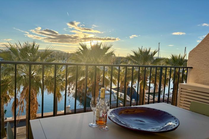 Just minutes from Saint-Tropez, come and discover this charming apartment perfectly located opposite the Marines de Cogolin harbor, offering a direct view of the port and boats.