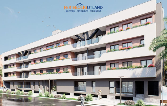 The apartments include built-in wardrobes, a parking space, and access to a communal swimming pool. Ideally located just 500 meters from the beach and 50 meters from local amenities, with easy access to golf courses and the airport, making it an excellent choice for both living and investment.