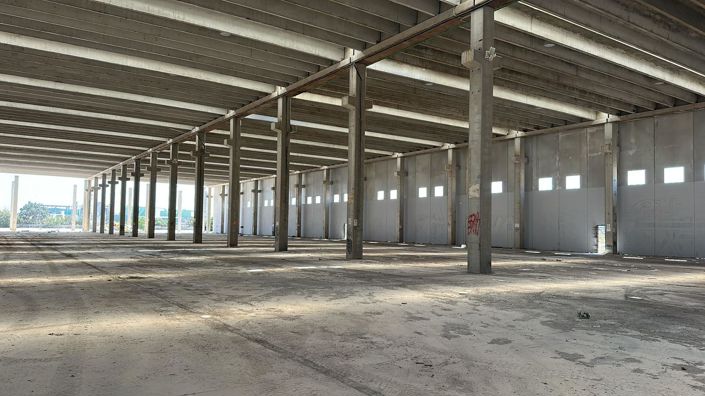 here 1) Ground floor of 7,383 m2 built (7,252 m2 usable) with. - open-plan space of 6,717 m2 (6,652 m2 usable) with a clear height of 10 m. - storage area of 411 m2 with toilets (377 m2 usable). - office area of 205 m2 with toilets (180 m2 usable). - technical area of 46 m2 (43 m2 usable). . 2) Upper floor of 617 m2 built (545 m2 usable) with two office areas/meeting rooms with toilets. . . Also offered for sale for EUR 16,000,000.