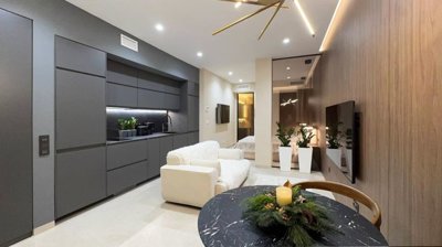 Stylish 1-bedroom apartment of 45?m² in the heart of Torrevieja, just 250 meters from Los Locos Beach. The apartment offers a bright living area with panoramic floor-to-ceiling windows, a fully equipped modern kitchen, and a comfortable bedroom with built-in wardrobe and elegant finishes. The bathroom features a rainfall shower, stone washbasin, and underfloor heating. Climate control, LED lighting, and a private terrace complete this sophisticated Mediterranean retreat—ideal as a holiday home or a permanent residence under the Spanish sun.