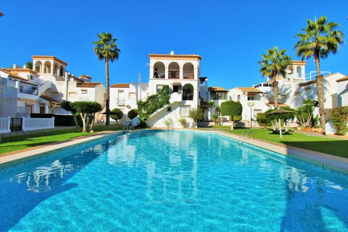Set in the heart of highly sought-after Playa Flamenca, this beautifully presented duplex penthouse enjoys an exceptional location just under 700 metres from the sandy coves of Cala Estaca and Cala Mosca, and less than 200 metres from all daily amenities including Mercadona supermarket, bars, restaurants, gym and the local town hall — everything you need is quite literally on your doorstep. Situated within a secure, gated urbanisation, residents benefit from immaculately maintained landscaped gardens and 2 stylish communal swimming pools, creating a peaceful Mediterranean setting despite being so close to the action. The property itself is designed to make the most of outdoor living, offering multiple private terraces with open views over the pool and gardens — ideal for relaxing, dining, or entertaining in the sunshine. Inside, the main living level features a bright open-plan lounge, dining area and kitchen, flooded with natural light and opening directly onto a terrace overlooking the pool. This floor also includes a double bedroom with fitted wardrobes and a modern family bathroom with walk-in shower, thoughtfully designed with space for utilities. The upper level comprises two further double bedrooms and a second contemporary bathroom, also with a walk-in shower. Completing the home is a private rooftop solarium, complete with a built-in BBQ and beautiful views across the communal areas and the Mediterranean Sea — a perfect spot for evening sunsets or hosting friends. An ideal choice for those seeking a quality home in a prime coastal location, whether as a permanent residence, holiday retreat or investment, with the beaches, amenities and lifestyle of Playa Flamenca all within easy walking distance.