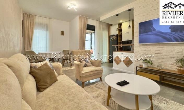 A modernly furnished apartment of 76 m² is for sale, located on the 2nd floor of a residential building with an elevator, in the Kava 1 area of Tivat, in a quiet and excellent location.