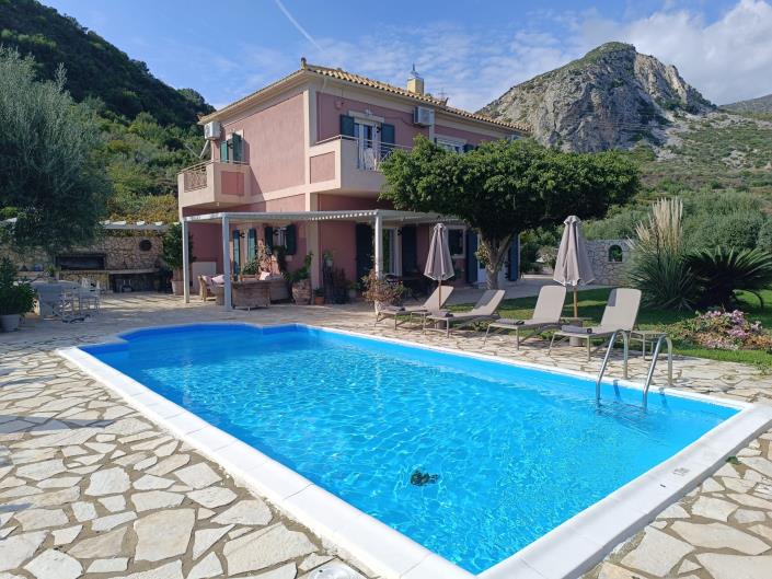 FOR SALE: Two-storey furnished villa of 144.22 sq.m. with swimming pool on a plot of 4,485.33 sq.m. outside the settlement limits in Ano Katelios, Kefalonia. It is located in an elevated location and enjoys excellent views of the sea, the mountain and the surrounding villages. The ground floor consists of a spacious living room, dining room, kitchen and wc. An internal staircase leads to the upper floor which consists of 2 bedrooms and 2 bathrooms. This is a fully equipped villa with a special decoration, it has air conditioning, fireplace, barbecue and a large outdoor area with a beautiful garden. Just 300 meters away is the fishing village of Katelios and 7 km away is the cosmopolitan Skala with its famous beach.